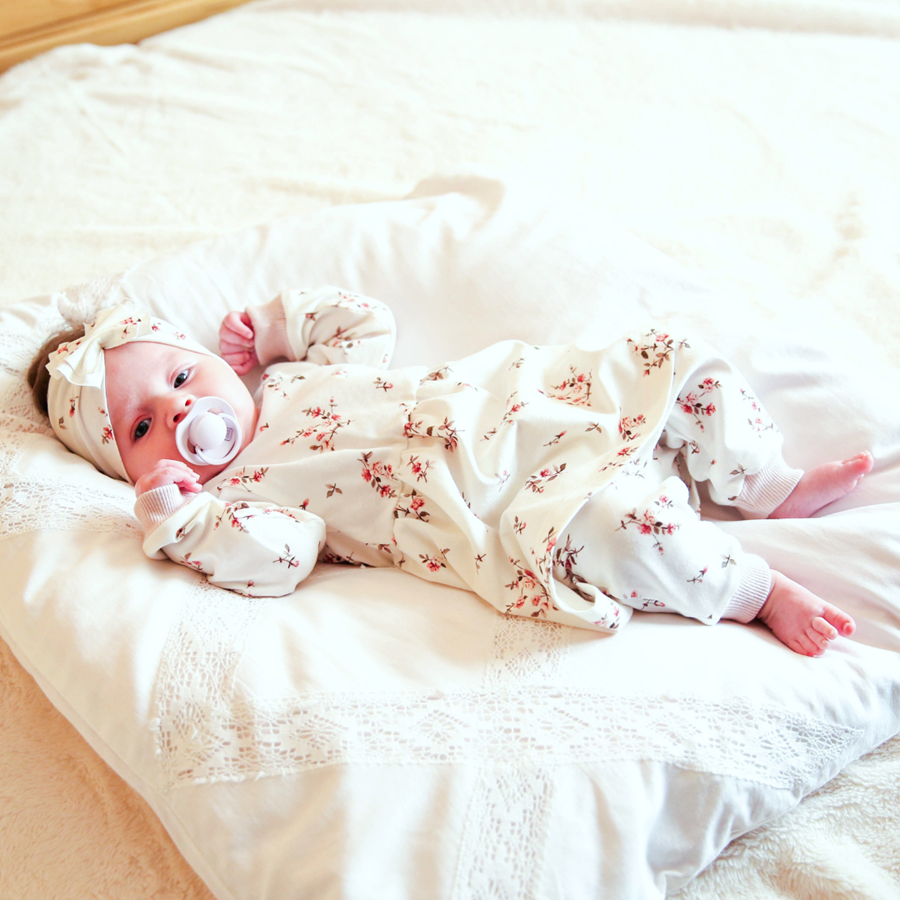 Spodenki Różyczki są przeznaczone dla noworodków i niemowląt. Są bardzo miękkie i przyjazne dla skóry. W pasie mają dzianinę prążkowaną, która nie uciska brzuszka i zapobiega opuszczaniu się spodenek. Przepiękny wzór Różyczki idealnie komponuje się z innymi produktami z tej kolekcji.